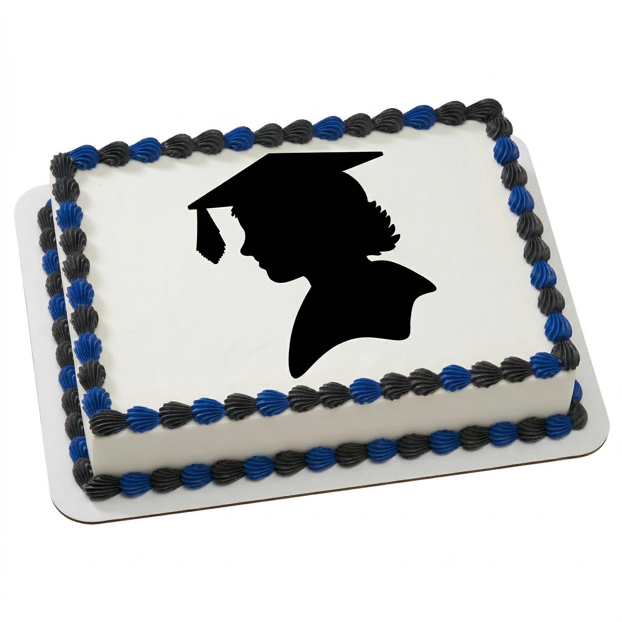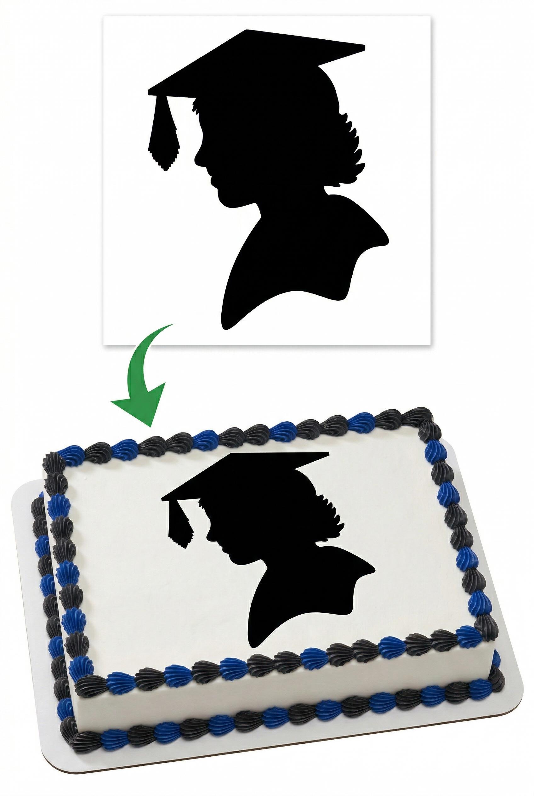 Female Graduate Silhouette Edible Cake Topper, Girl Grad Cap Gown Frosting Sheet Decoration ~ D1171