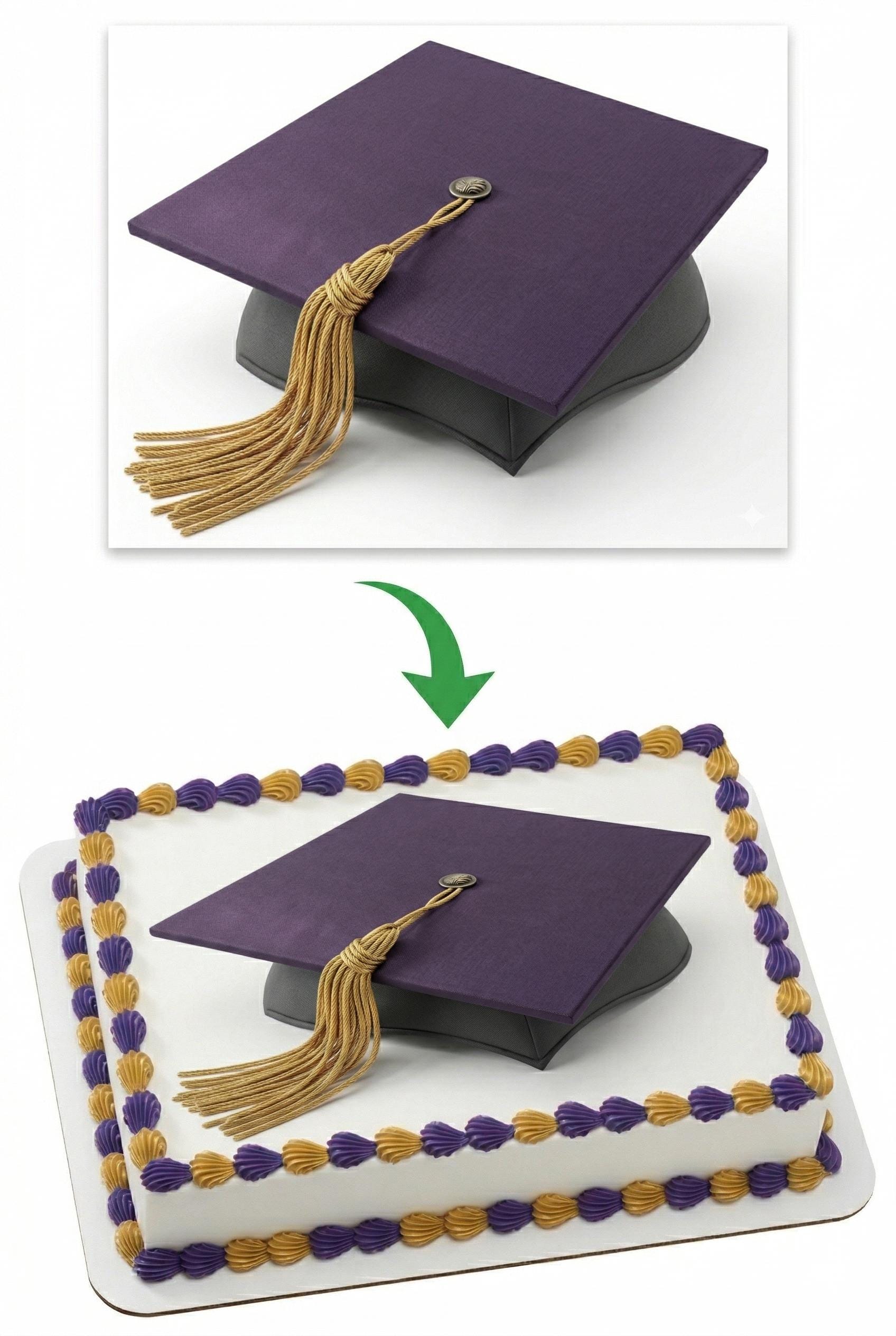 Peel the edible image from the backing sheet and place it on your freshly frosted cake, cupcakes, or cookies. For best results, apply to a smooth layer of buttercream or fondant icing. The edible sheet will blend into your frosting within hours for a seamless, professional finish.