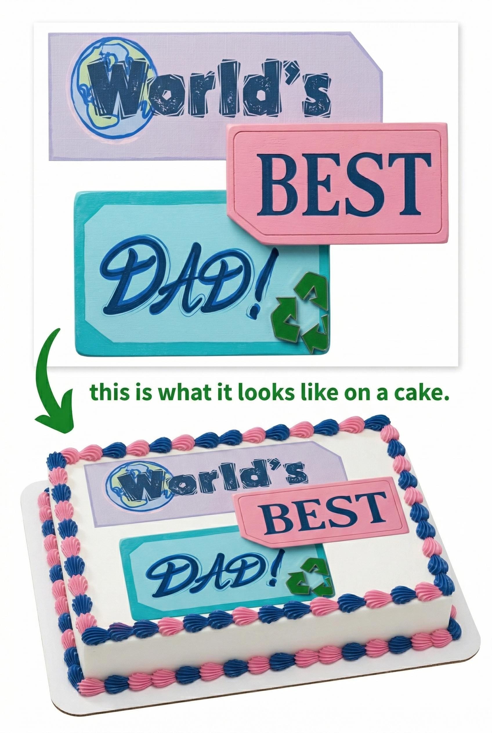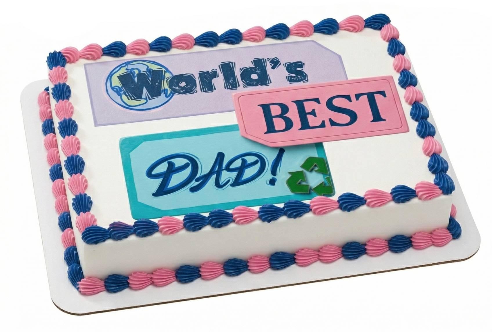 World’s Best Dad Edible Cake Topper — Bold Father’s Day Design Printed on Premium Frosting Sheet for Cakes, Cupcakes & Cookies. Celebrate Dad with a Fun Modern Look. Free Custom Text!