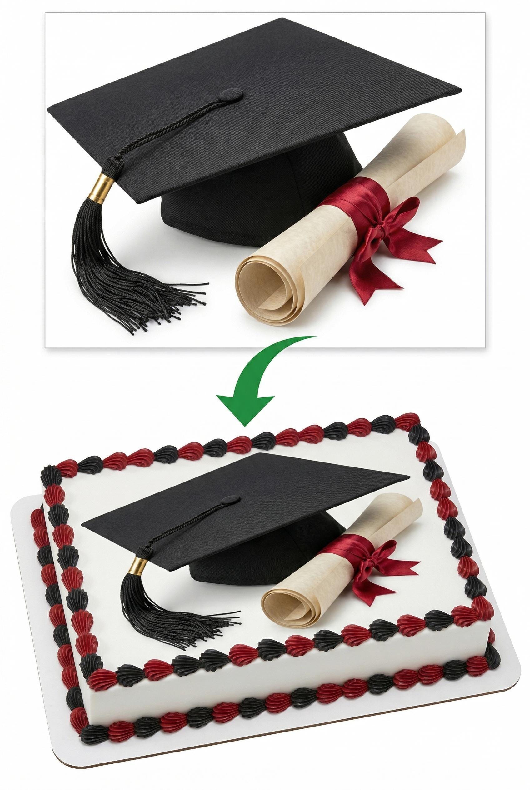 Peel the edible image from the backing sheet and place it on your freshly frosted cake, cupcakes, or cookies. For best results, apply to a smooth layer of buttercream or fondant icing. The edible sheet will blend into your frosting within hours for a seamless, professional finish.