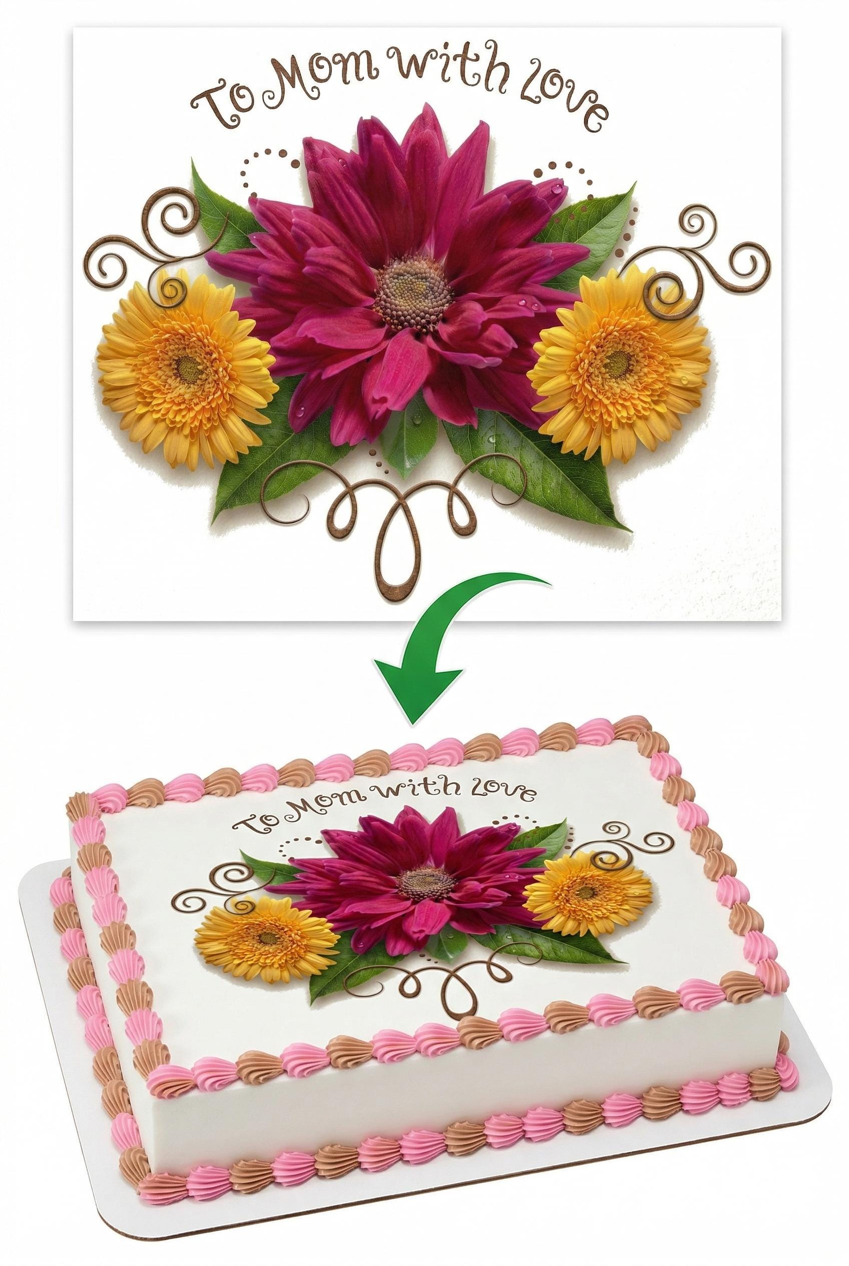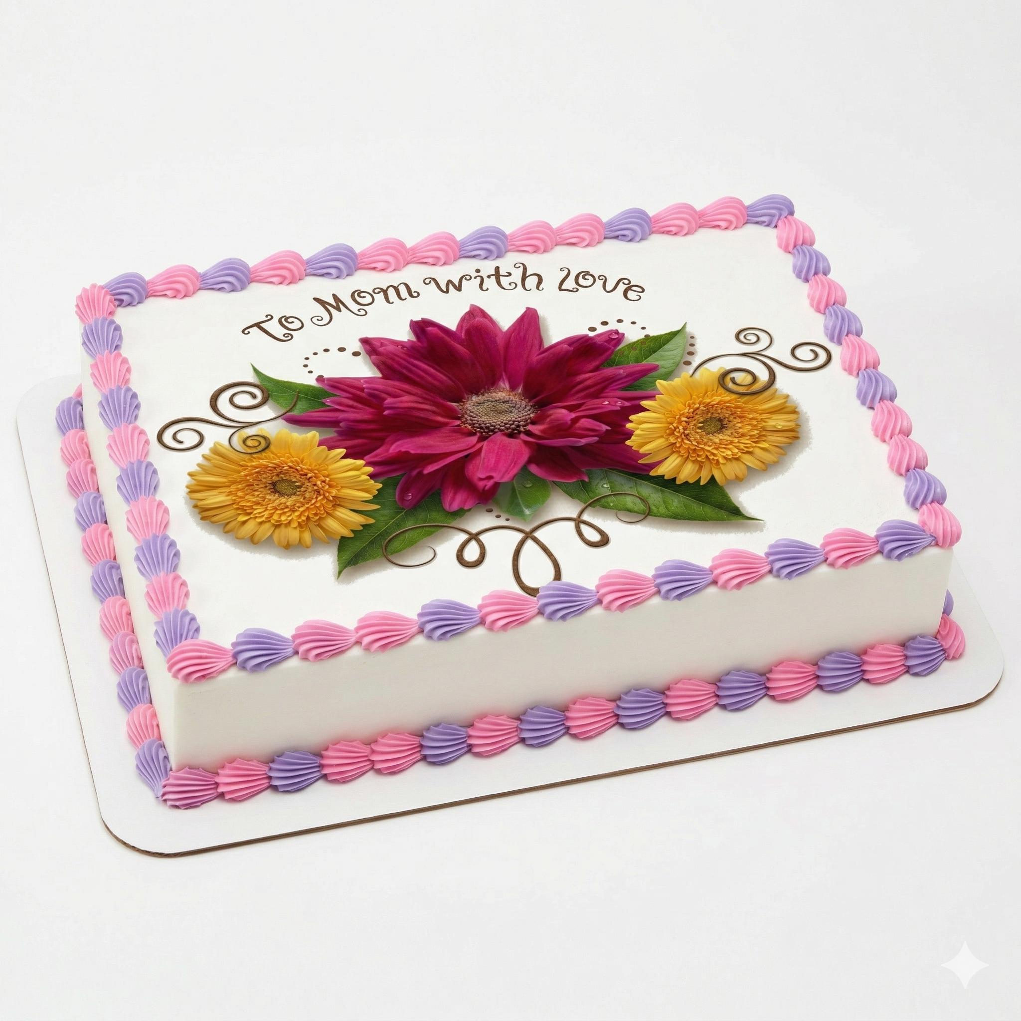 To Mom with Love Edible Cake Topper, Floral Frosting Sheet Decoration D1369