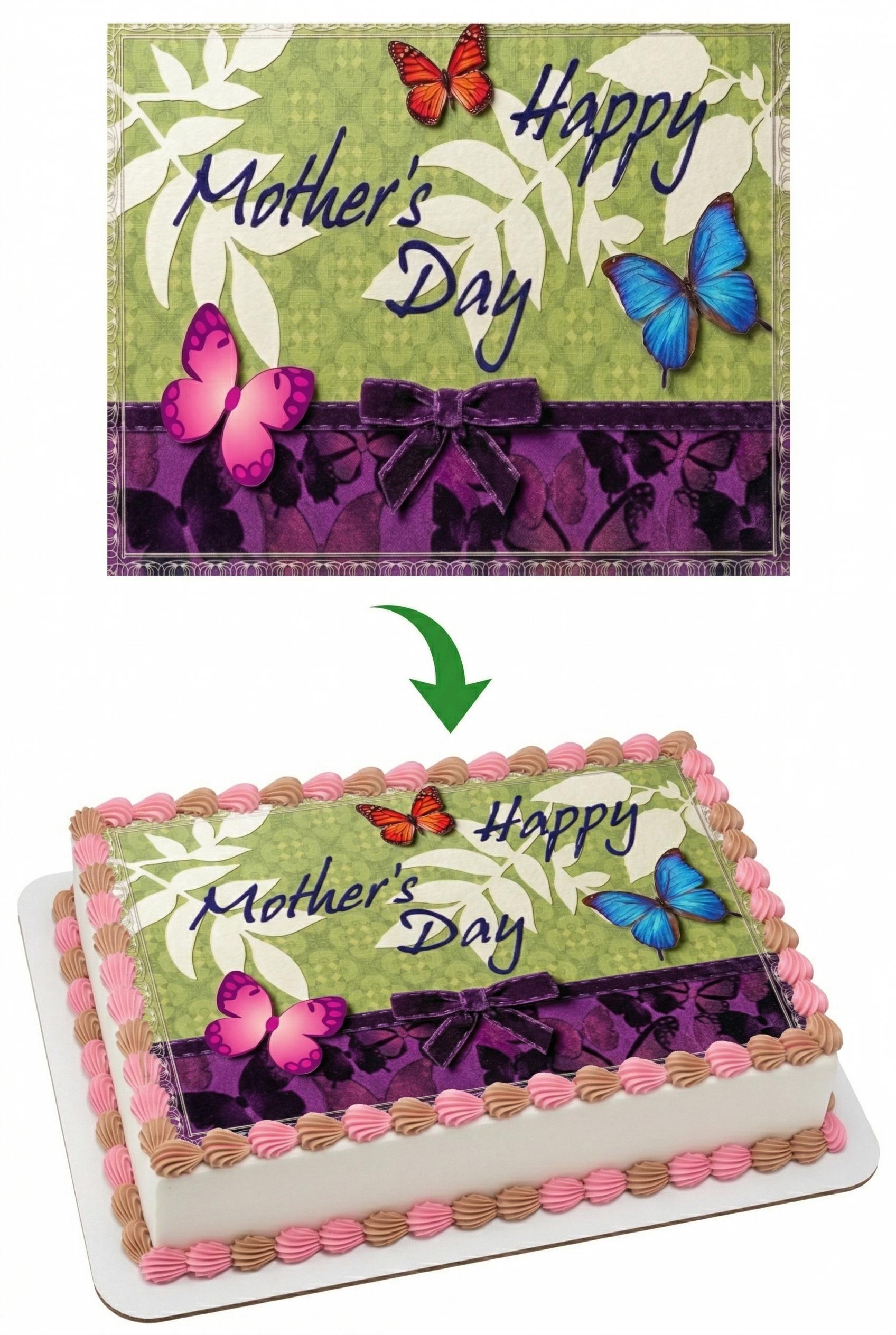 Happy Mother’s Day Butterfly Edible Cake Topper, Floral Frosting Sheet Decoration D2267