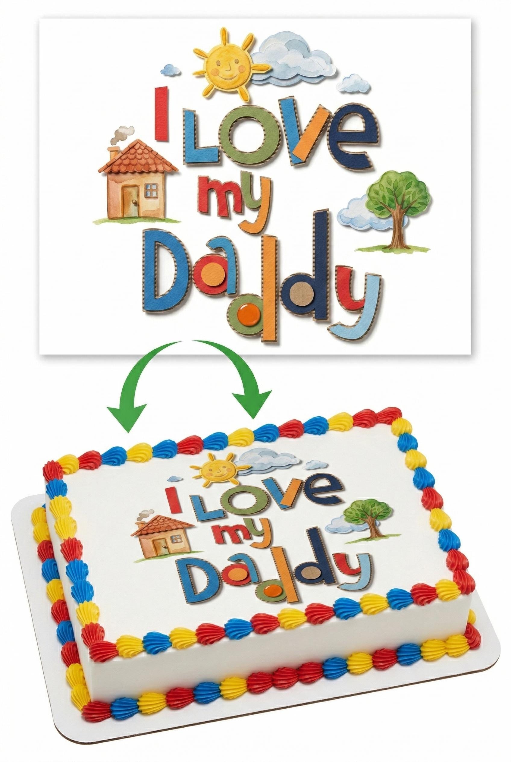 I Love My Daddy Edible Cake Topper — Sweet Father’s Day Kids Design Printed on Premium Frosting Sheet for Cakes, Cupcakes & Cookies. Celebrate Dad with Love. Free Custom Text!