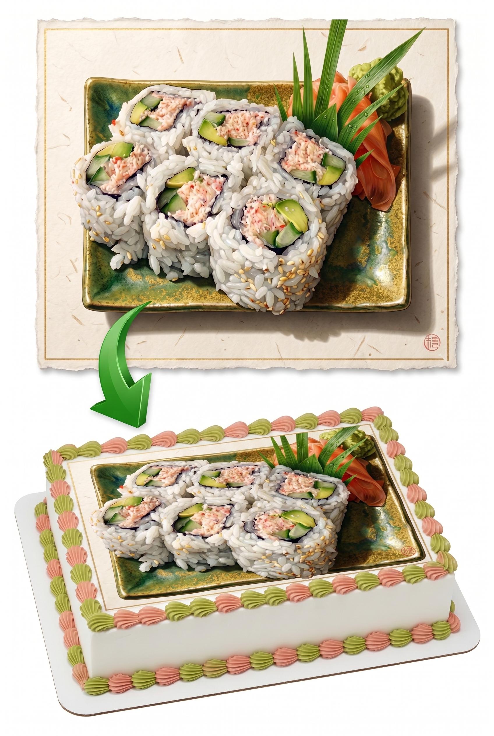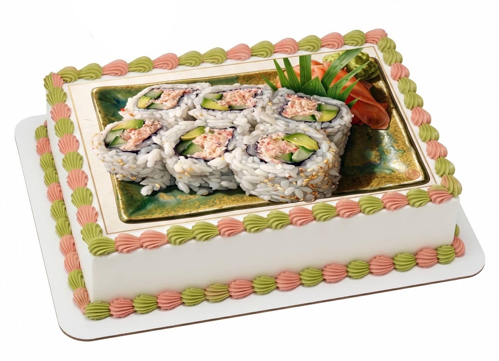 Sushi Roll Edible Cake Topper — Japanese Food Frosting Sheet Image Printed on Premium Fondant Sheet. Free Custom Text!