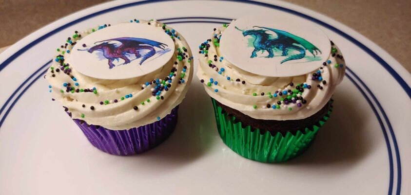 PERFECT!! I only use edible decorations on my cupcakes, especially for kids and was at a loss on how I would do "dragons"....and in the colors that I needed!!