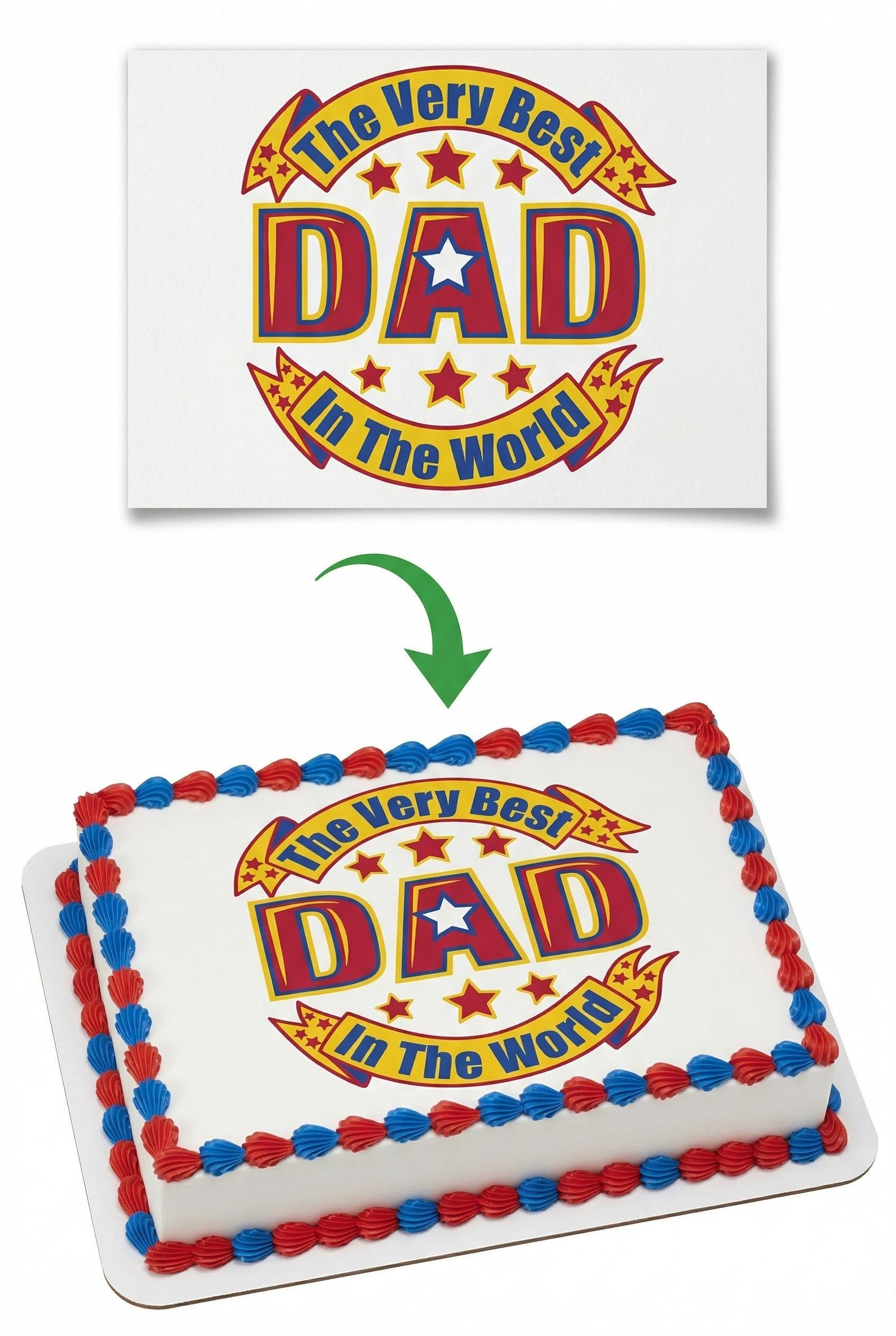The Very Best Dad In The World Edible Cake Topper — Bold Father’s Day Design Printed on Premium Frosting Sheet for Cakes, Cupcakes & Cookies. Celebrate Dad Like a Champion. Free Custom Text!