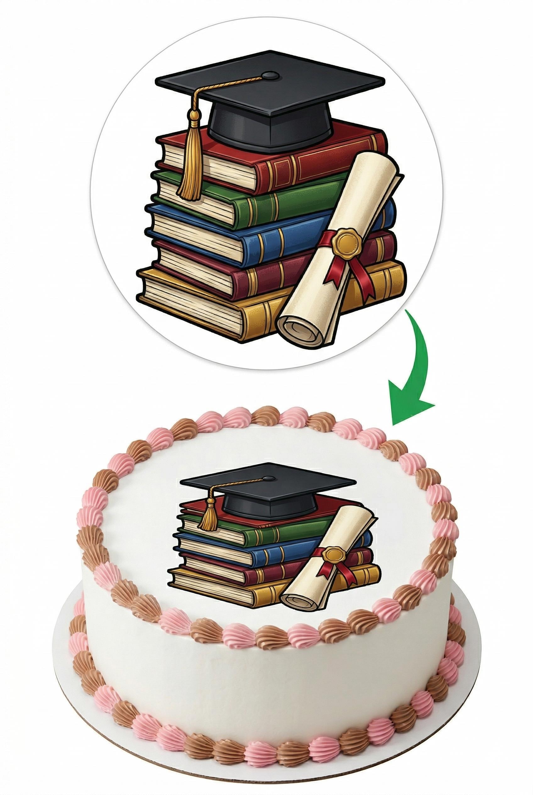 Graduation Cap Books Diploma Edible Cake Topper, Grad Party Frosting Sheet Decoration ~ D30011