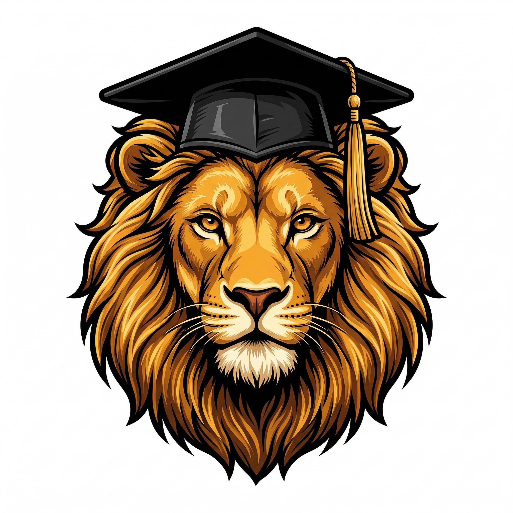 Majestic golden lion with a full flowing mane wearing a black graduation cap — a regal edible cake topper printed on premium frosting sheets for school pride celebrations. This design is made for any school whose mascot is the Lions or Pride. The rich golden-amber and deep brown mane with detailed rendering creates a stunning mascot-quality image that prints with vivid food-safe inks. Personalize free with a name, graduation year, or special message. Choose from 8 sizes: half sheet, quarter sheet, 8" round, 6" round, 3" round (6 per sheet), 2.5" round (12 per sheet), 2" round (15 per sheet), or 3"x2" ovals (8 per sheet). Simply peel and place on buttercream, fondant, or whipped frosting. Stays fresh up to 12 months sealed at room temperature. Allergen-friendly options available. Ships flat with care instructions. SKU D30015.