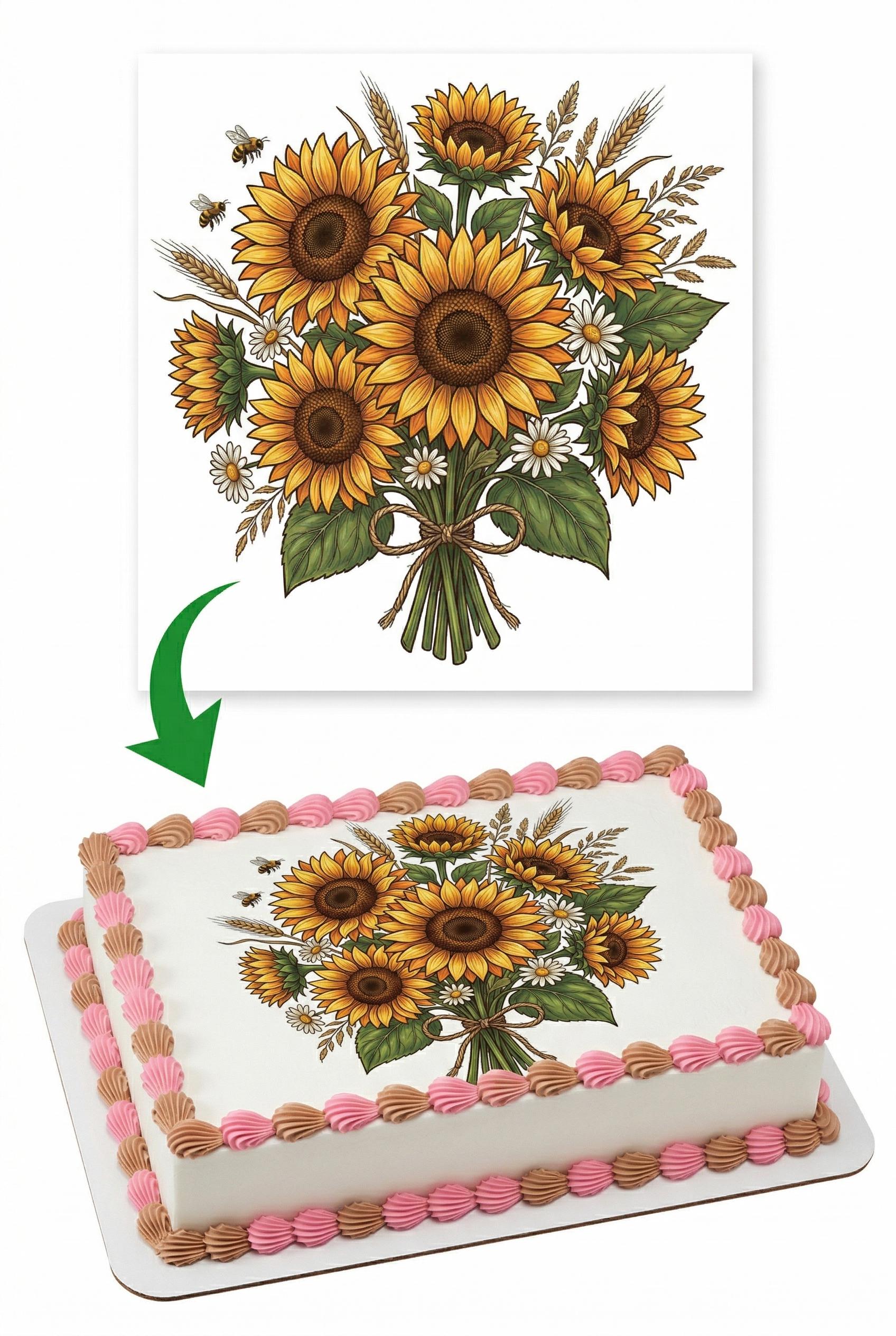Sunflower Bouquet Edible Cake Topper, Spring Summer Frosting Sheet D30037