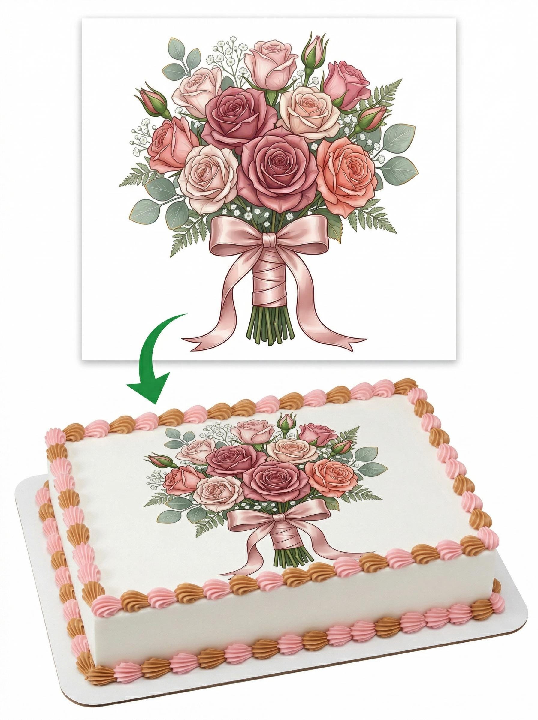 Mother’s Day Rose Bouquet Edible Cake Topper, Floral Frosting Sheet D30040