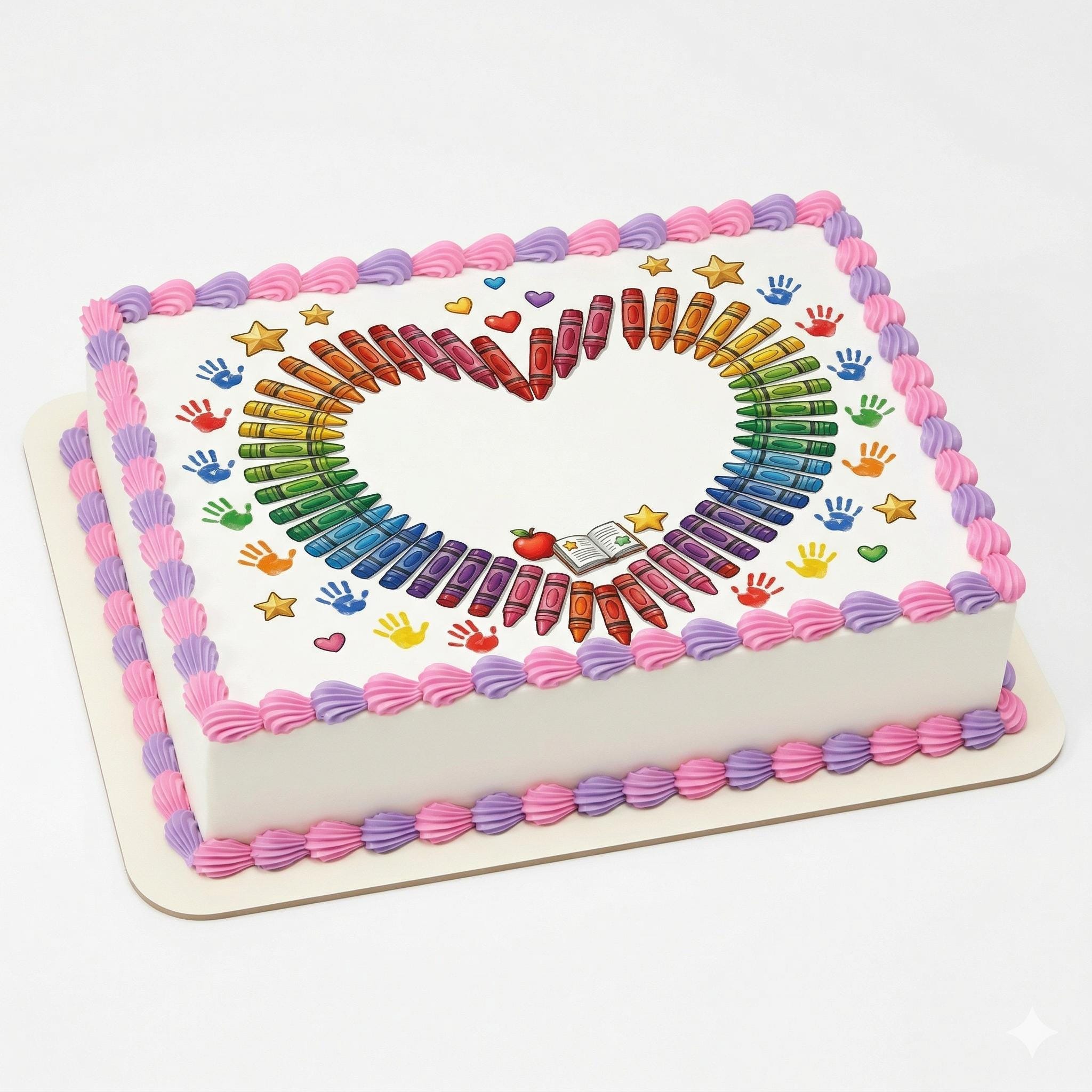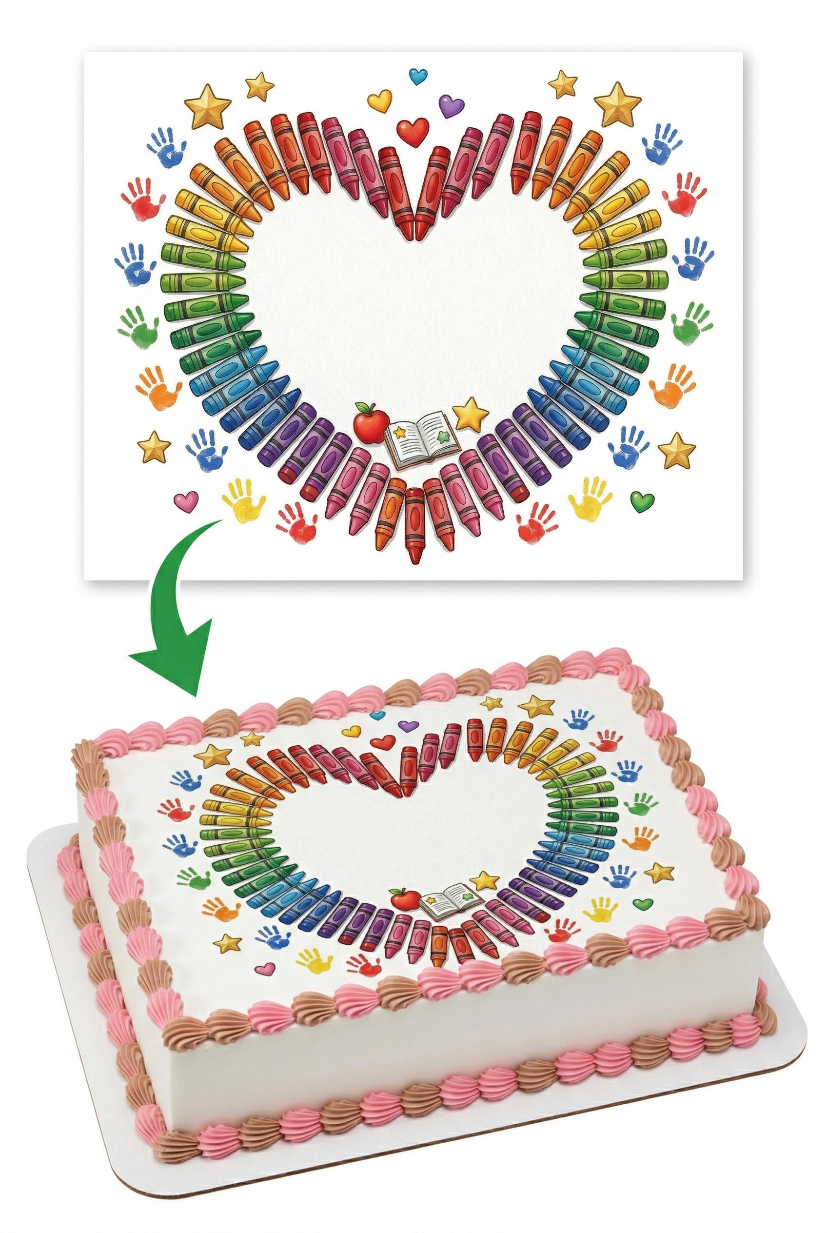 Rainbow Crayon Heart Edible Cake Topper, Teacher School Frosting Sheet D30041