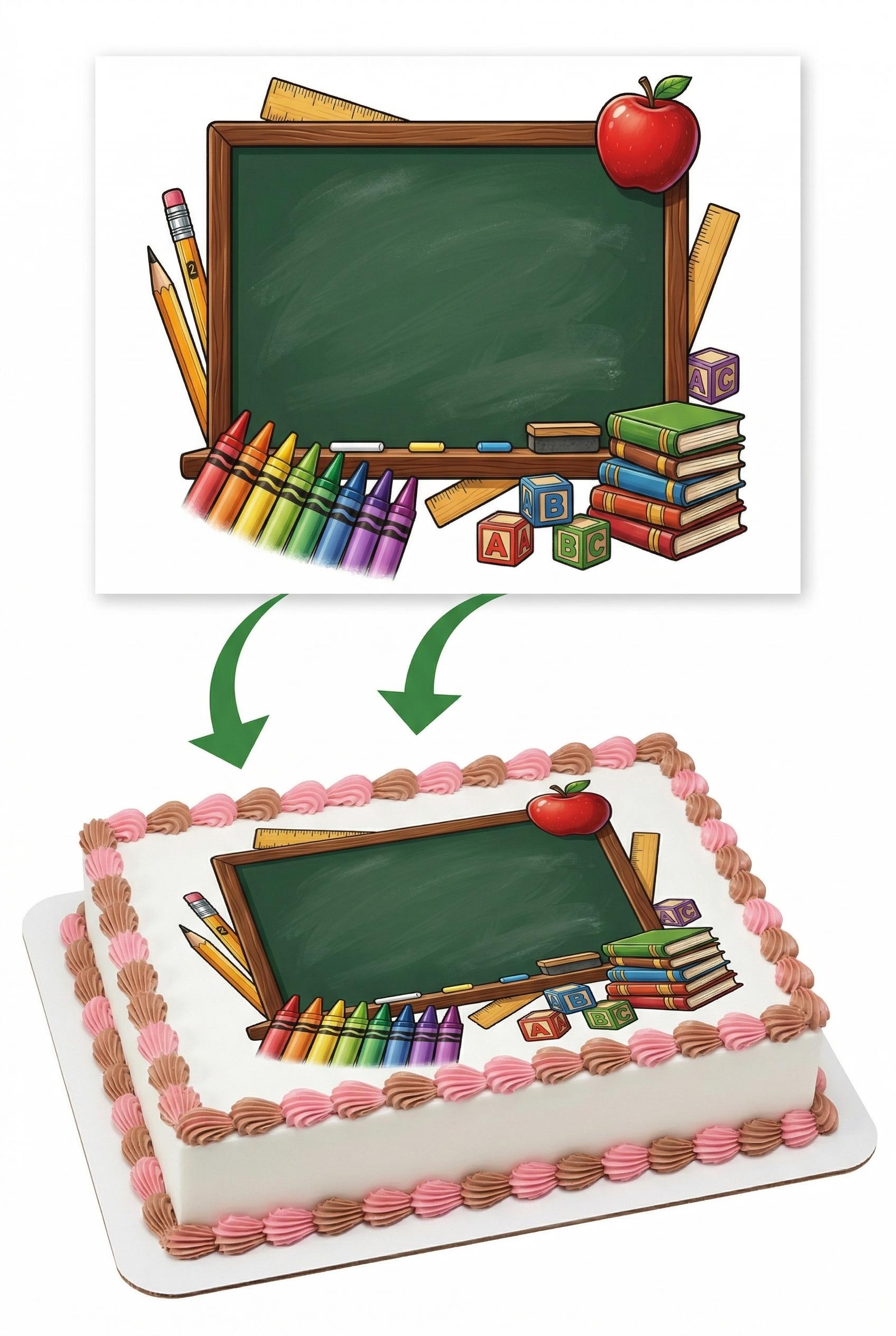 School Chalkboard Edible Cake Topper, Teacher Classroom Frosting Sheet D30043