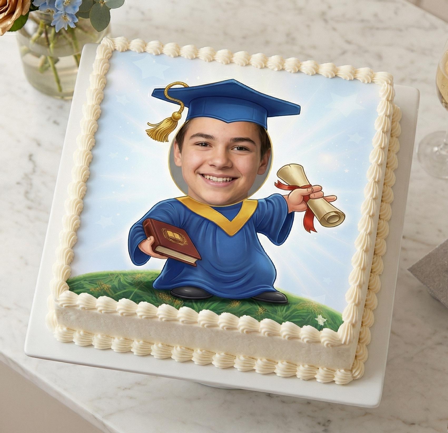 Custom Face Graduation Edible Cake Topper, Photo Frame Frosting Sheet D4367