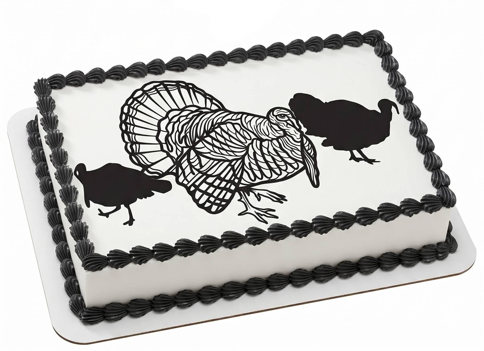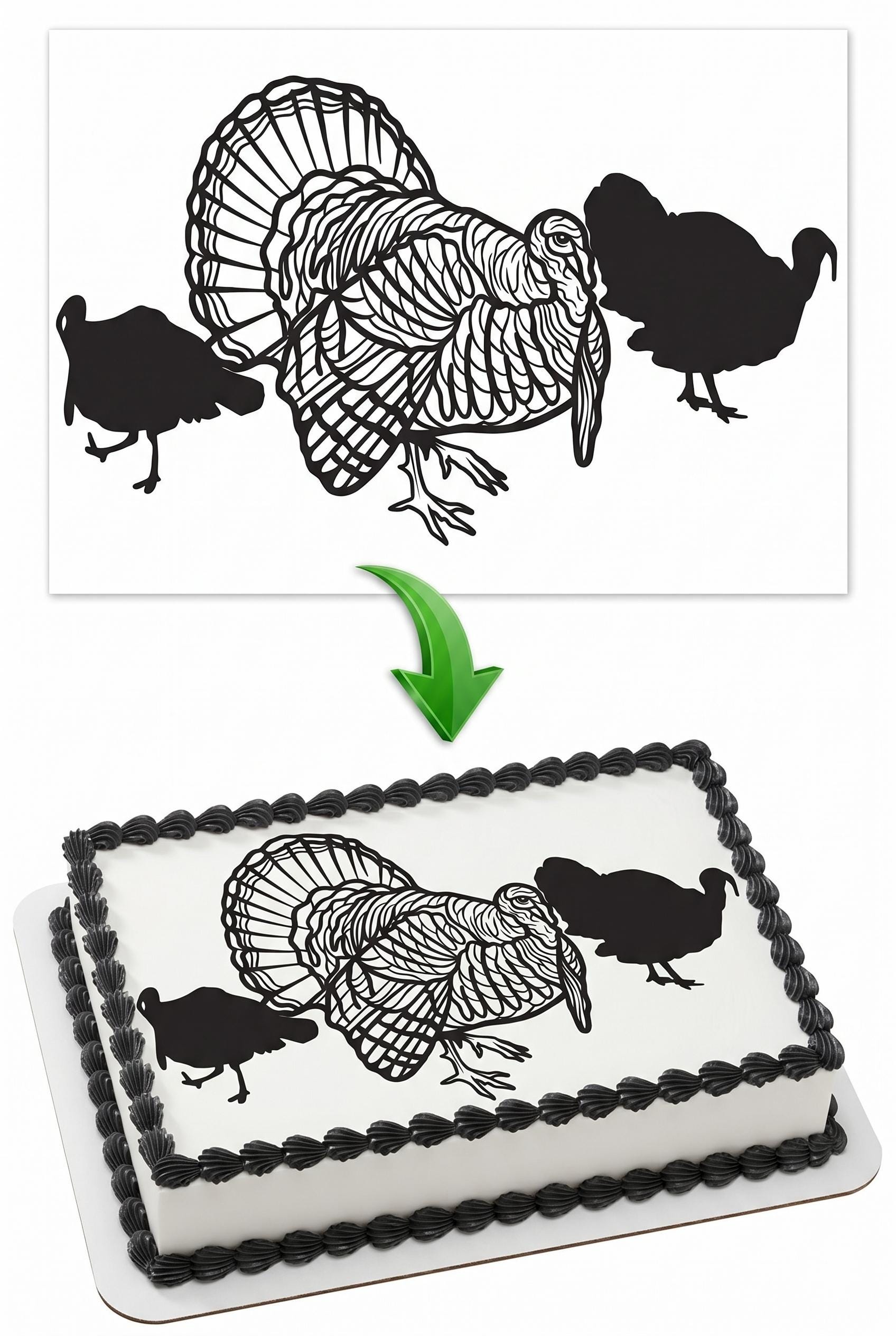 Wild Turkey Edible Cake Topper — Bold Black and White Wild Turkey Hunting Frosting Sheet Image Printed on Premium Fondant Sheet. Free Custom Text!
