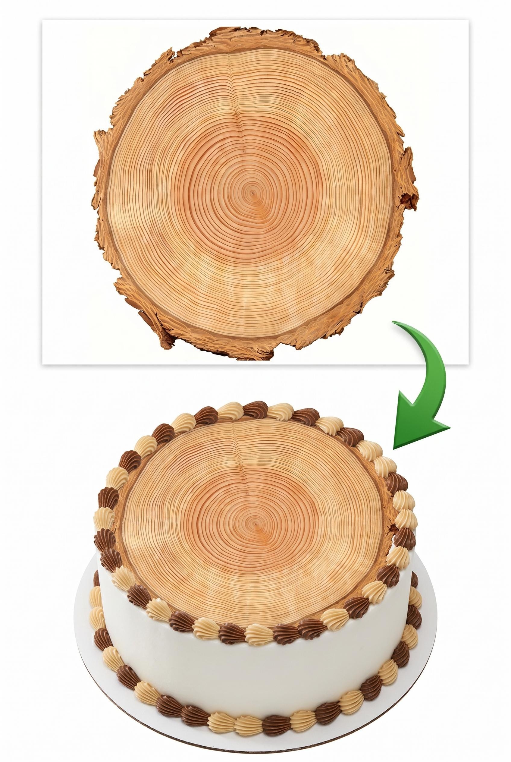 Our edible cake toppers arrive printed exactly as pictured on a premium fondant frosting sheet (cake not included). A beautifully detailed wood grain tree ring cross-section gives any cake a stunning rustic, natural finish — perfect for lumberjack parties, outdoor celebrations, woodland weddings, and anyone who loves earthy, nature-inspired style. Simply trim to size, peel from the backing, and place on your frosted cake for a stunning, professional finish. Made to order with vibrant, food-safe edible ink on a high-quality icing sheet that blends seamlessly into buttercream, fondant, royal icing, or whipped frosting.