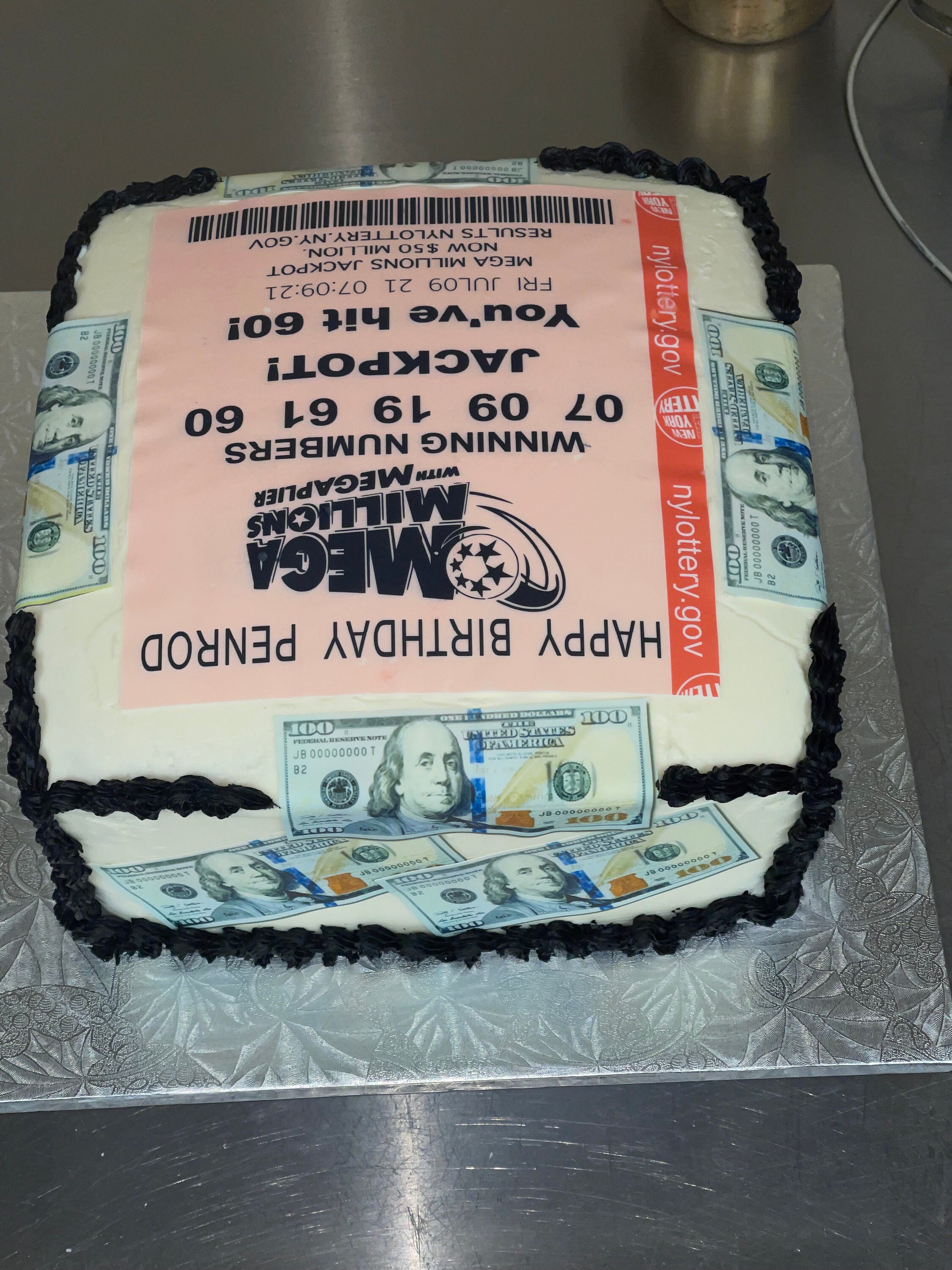 One premium 2D edible frosting sheet with 3 printed cake side strips (approximately 9 x 2.5 inches each). Strips need to be cut from the sheet before use. Detailed placement and care instructions are included with every order. Edible sheets stay fresh up to one year when stored sealed at room temperature (65–80°F).