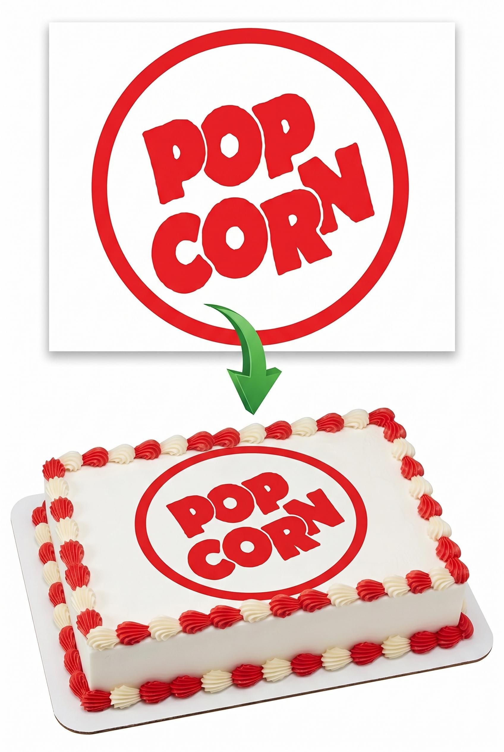 Our edible cake toppers arrive printed exactly as pictured on a premium fondant frosting sheet (cake not included). A bold red and white popcorn logo inside a classic circle badge brings the magic of the movies straight to your cake — perfect for movie night parties, cinema themed birthdays, drive-in events, and any popcorn lover's celebration. Simply trim to size, peel from the backing, and place on your frosted cake for a stunning, professional finish. Made to order with vibrant, food-safe edible ink on a high-quality icing sheet that blends seamlessly into buttercream, fondant, royal icing, or whipped frosting.