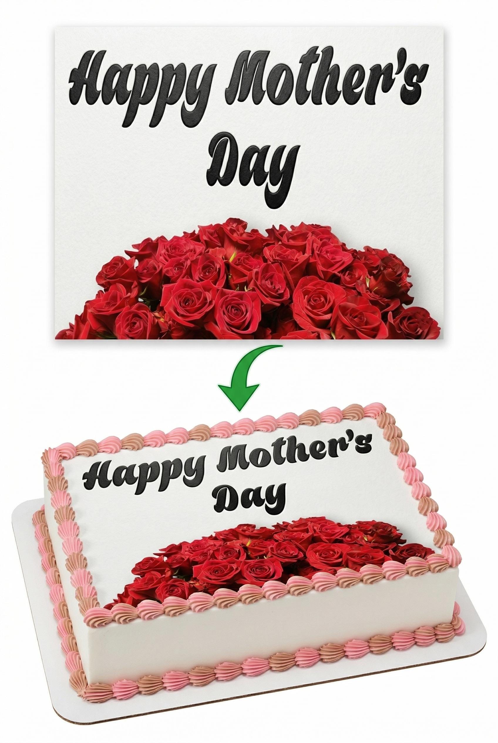 Happy Mother’s Day Roses Edible Cake Topper, Floral Frosting Sheet Decoration D24009