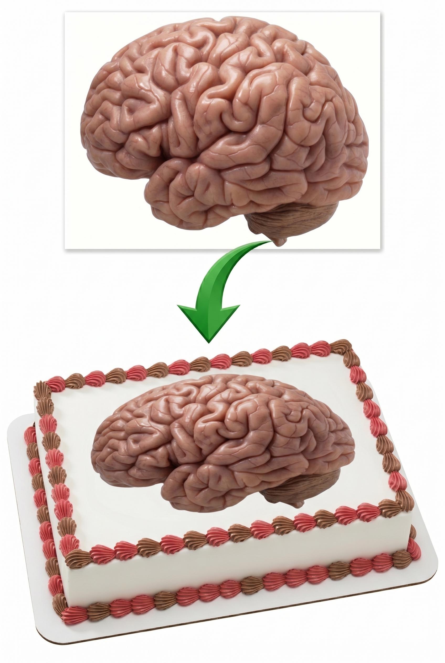 Human Brain Edible Cake Topper — Realistic Anatomy Science Frosting Sheet Image Printed on Premium Fondant Sheet. Free Custom Text!