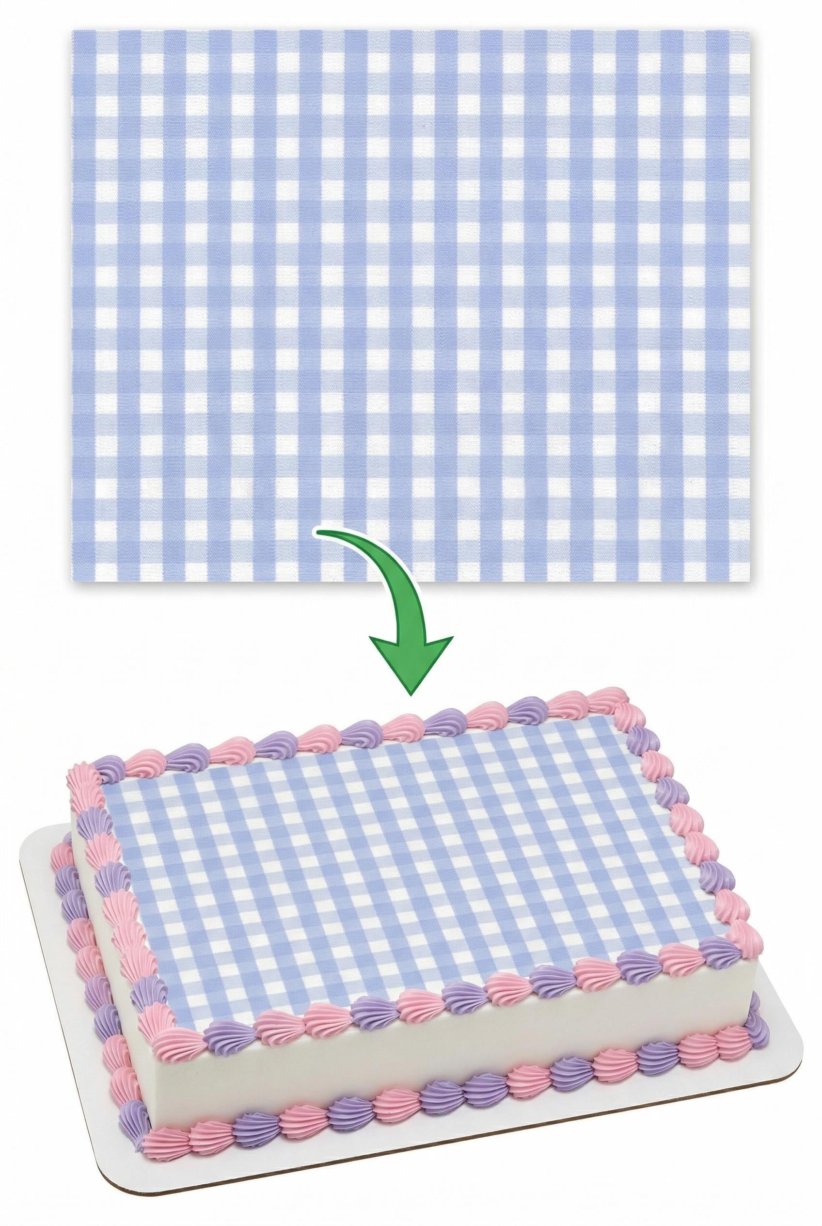 Baby Blue Gingham Checker Print Birthday - Edible 2D Fondant Cake Cupcake Topper For Birthdays and Parties! - D24406