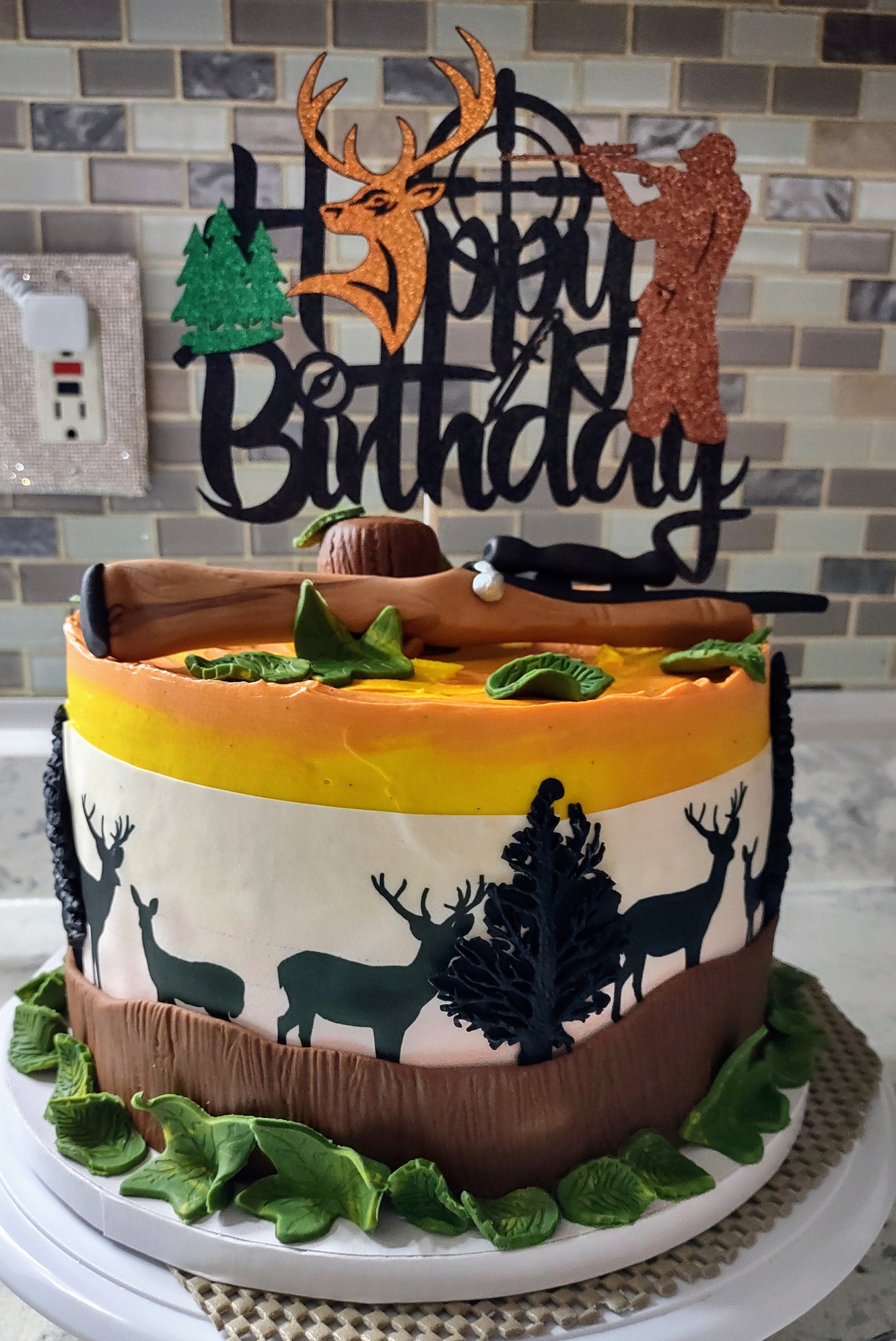 Grazing Deer Hunting ~ Edible 2D Fondant Birthday Cake Side Toppers ~ D24496