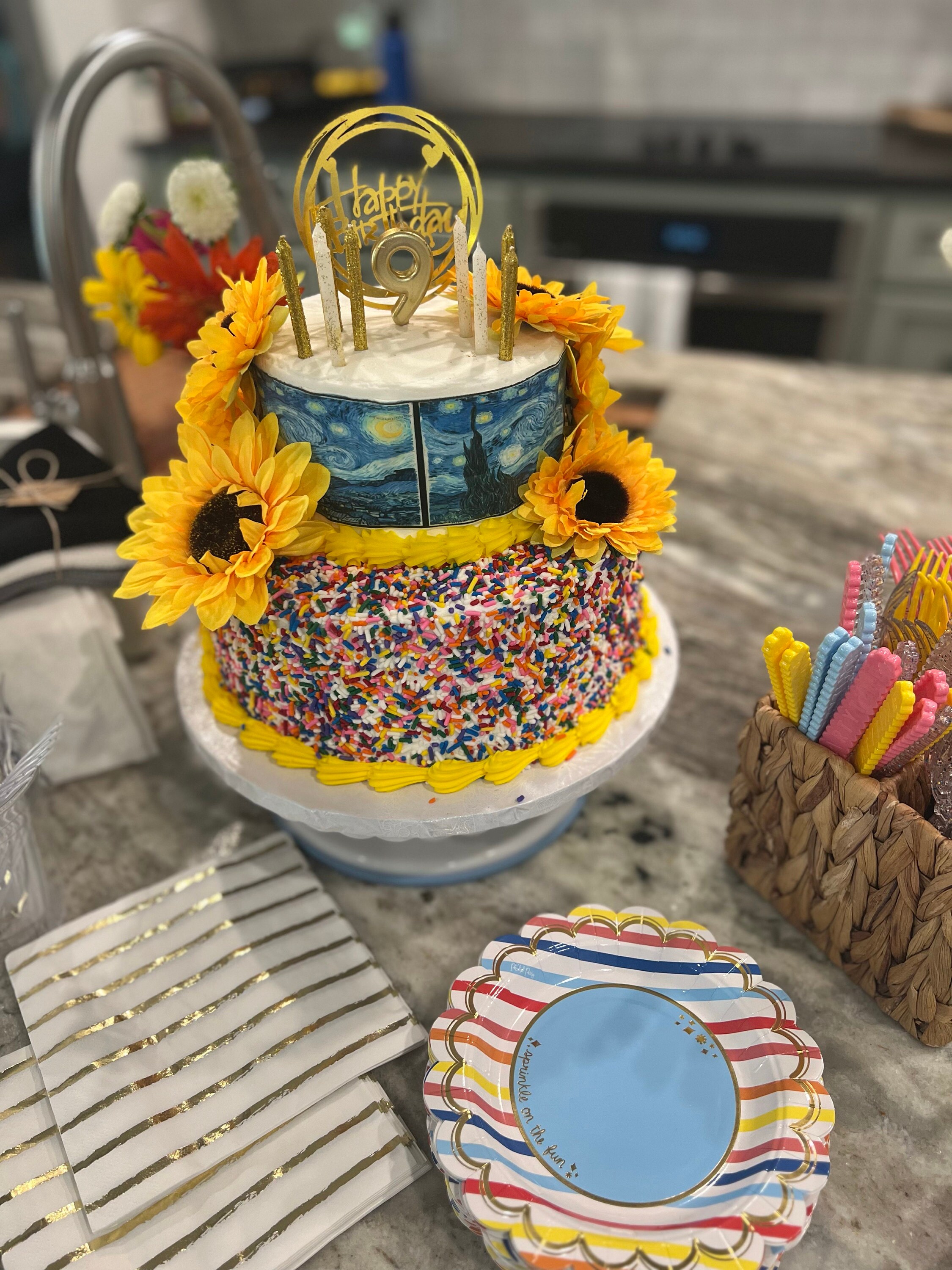 Vincent Van Gogh Starry Night Birthday - Side Strips ~ Edible 2D Fondant Birthday Cake Side Toppers ~ D24656
