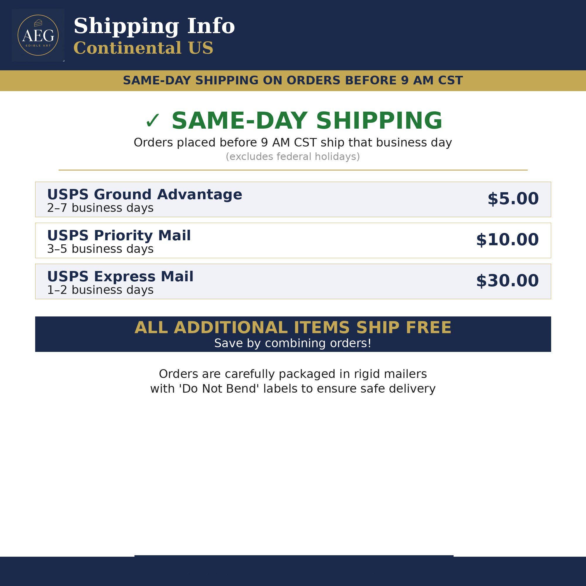 Orders placed before 9 AM CST ship same business day (excludes federal holidays).